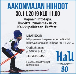 Haapaveden Urheilijat ei ole vakuuttanut kilpailijoita joten kilpaileminen omalla vastuulla.