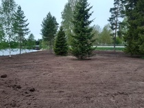 Keväällä 2020 ruoppausmaat tasattiin ja tehtiin pohjat ruokamullan levittämiselle. Ruokamulta levitettiin ja heinänsiemen kylvettiin kesäkuussa 2020. Parkkialueelle asennettiin pintamurskeet ja tehtiin istutukset valmiiksi.