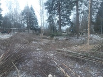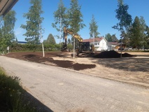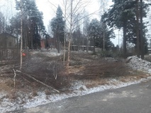 Tontilta harvennetaan puustoa pois. Tontti satoitetaan täytemailla niin että siihen voidaan tehdä ruohonleikkurilla ajettava puistoalue.