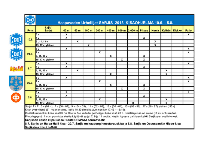 | SARJIS-KISAOHJELMA 2013.pdf (49 kB) Lataa tästä koneellesi tämän kesän sarjakisa-ohjelma |